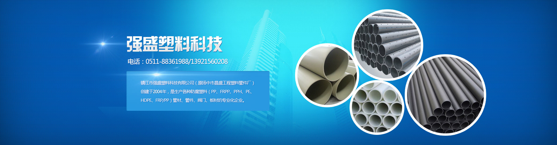 鎮江市強盛塑料科技有限公司(原揚中市昌盛工程塑料管件廠)創建于2004年,是生產各種防腐塑料(PP、FRPP、PPH、PE、HDPE、FRP/PP)管材、管件、閥門、板材的專業化企業。公司擁有各類先進生產設備,固定資產約3800萬元,可生產管材、管件口徑為Φ15-Φ1200mm,產品規(guī)格齊全。目前產品廣泛適用于醫藥、食品、冶金、造紙、電力、礦山、城市污水處理、垃圾填埋、輕工紡織等領域,暢銷全國各省市自治區,遠銷二十多個國家及地區。